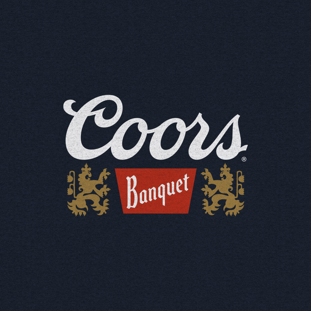Founded in the foothills of the Rockies in 1873, the Coors Golden Brewery has remained committed to brewing excellence - ensuring that every batch of this legendary beer is as perfect as the last. We've paid tribute to this golden brew with a double-sided graphic hoodie of its very own featuring the Coors Banquet lion logo on the left chest, and for the back - we've selected a full sized scenic waterfall graphic along with "Golden, Colorado" and "Brewed with 100% Rocky Mountain Water Since 1873" text. To complete the vintage look and feel of this hooded beer sweatshirt - we've printed the design on a soft, navy blue hoodie.