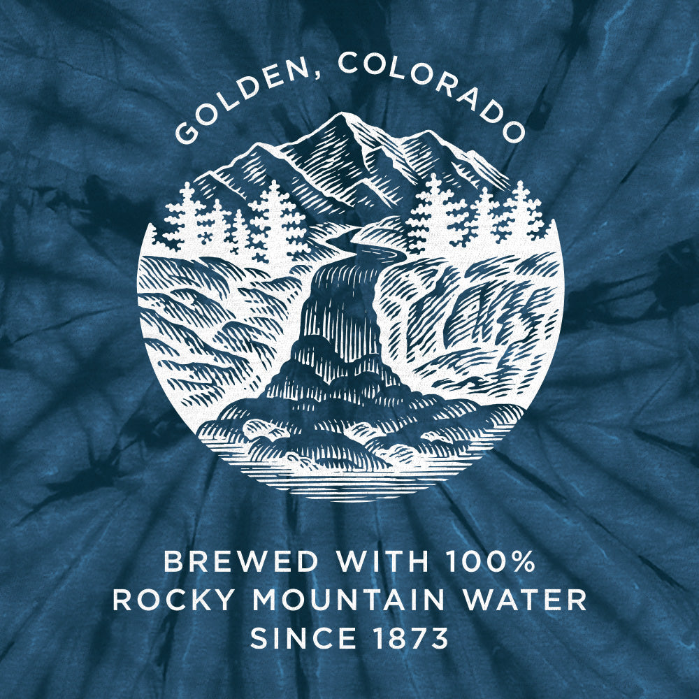 For an added twist, we've left our solid color t-shirts behind, and printed this Coors design on a unique, 100% cotton navy blue tie dye t-shirt.