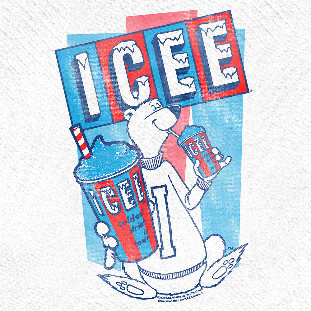An ICEE Cherry Lime or Orange Dream can help beat the heat, but for those extra sunny days - you can stay cool with this summer inspired graphic tank top featuring the instantly recognizable ICEE logo, and ICEE Polar Bear mascot. To complete the vintage look and feel of this ICEE tank shirt - we've distressed the graphic and printed it on a soft, white cotton tank top.