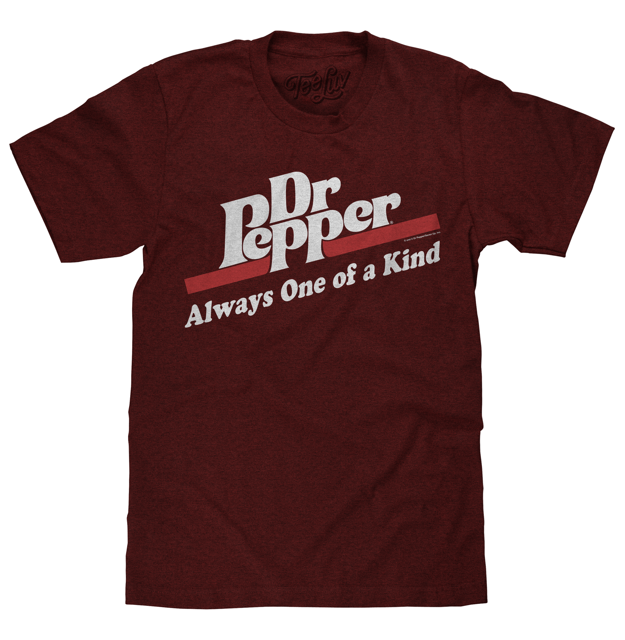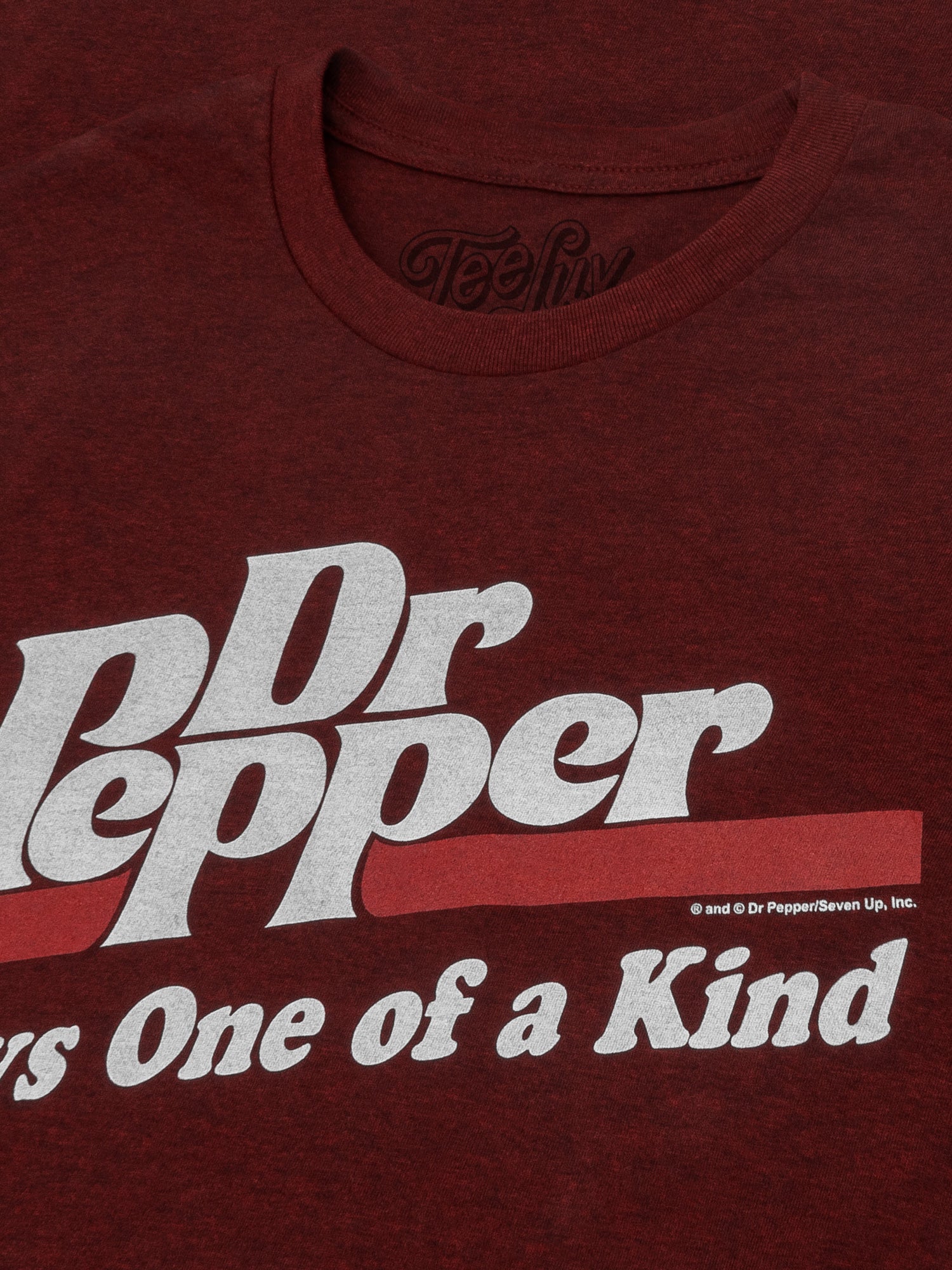 The iconic Dr Pepper has been doing things differently for over a century - earning loyal fans with every sip of its delicious 23-flavor blend. We've honored this iconic beverage with a unique graphic tee featuring the instantly recognizable Dr Pepper logo, and the "Always One of a Kind" slogan. As an added nod to this soda's unmistakable style - we've printed the design on a soft, Crimson Black Heather tee.
