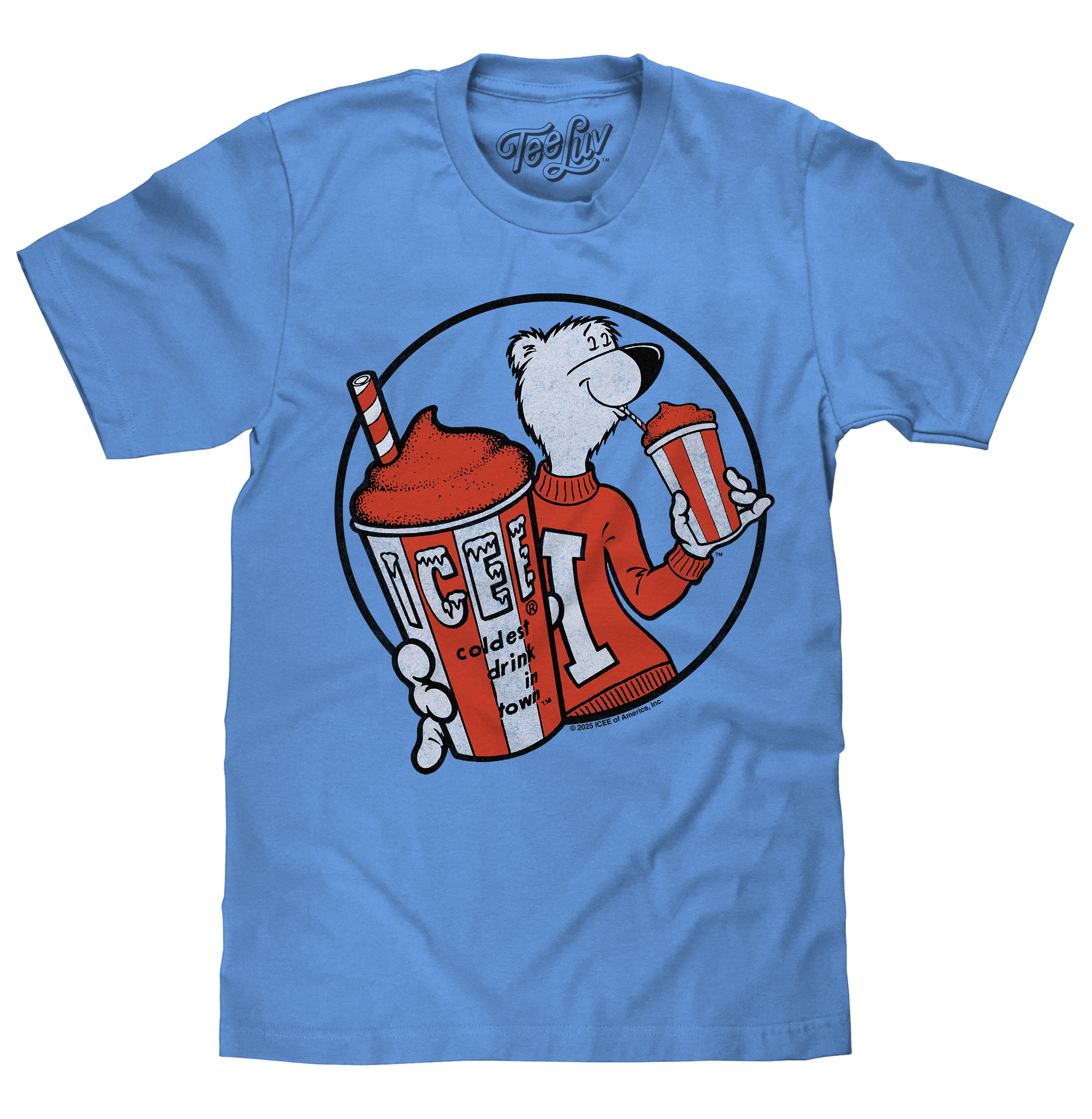 Sweet, fun, and always refreshingly cold - few treats bring back memories like an ICEE on a hot day. We've celebrated America's favorite frozenated beverage with a throwback graphic tee featuring a lightly distressed graphic of the ICEE Polar Bear mascot proudly holding a frozen drink. To give this ICEE shirt that light, summer vibe - we've printed it on a soft Carolina Blue cotton tee. Perfect for adding a pop of fun to your day!