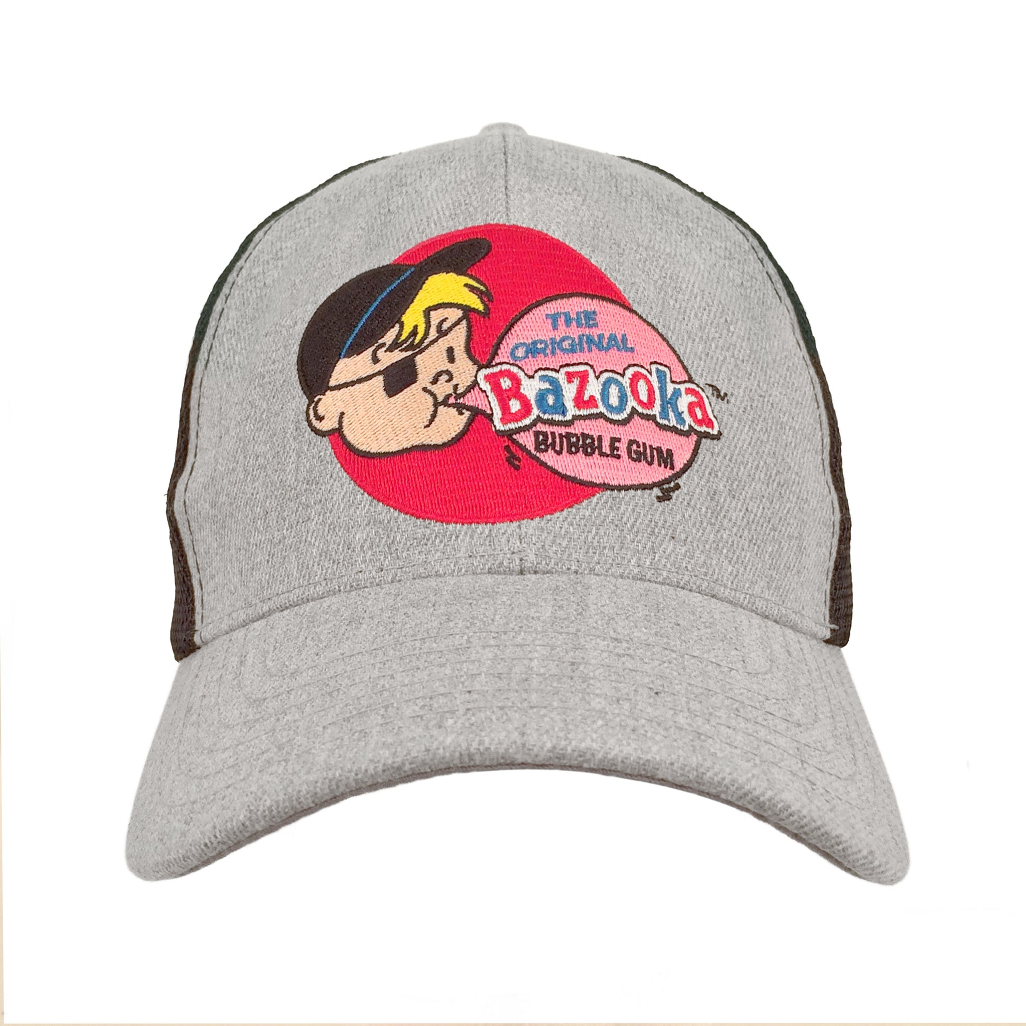 We've selected the authentic licensed Bazooka Joe cartoon character and "The Original Bazooka Bubble Gum" text, and stitched it on a high quality, grey and black trucker hat. Perfect for everyday casual wear!