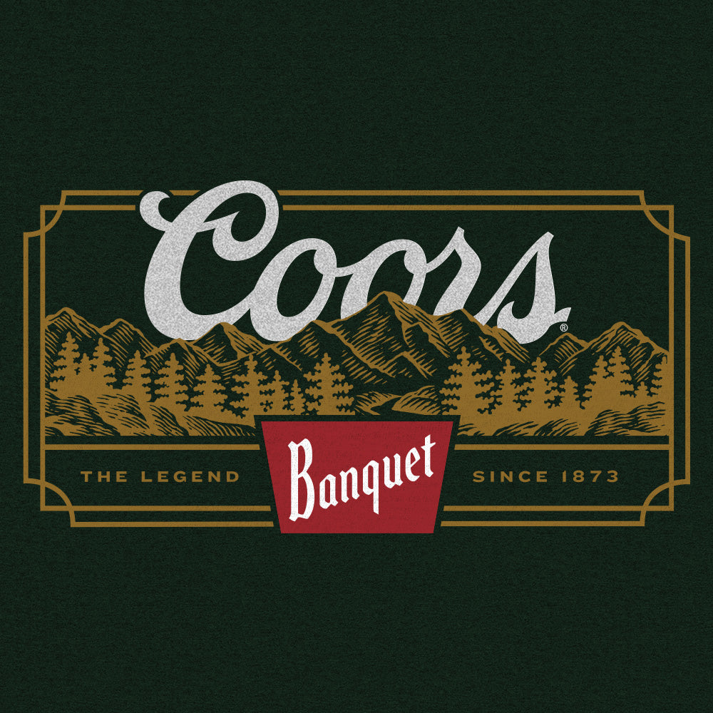 There's a saying that one should "see the forest for the trees", but the Tee Luv Arts Department really loves getting all the details perfect! Inspired by the legendary Coors Banquet brew and its home at the base of Colorado's Rocky Mountains - we've crafted this comfortable country themed shirt featuring the "Coors Banquet" logo and "The Legend Since 1873" text against a rugged mountain forest background. To complete the nature-inspired look and feel of this Coors Banquet shirt - we've printed the design on a soft, 100% cotton Forest Green tee.